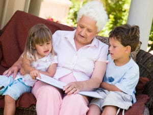Grandmother reading to grandchildren