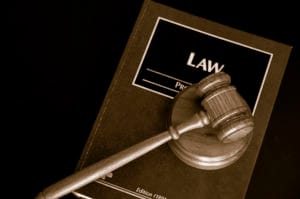 judges court gavel on a law book, from above