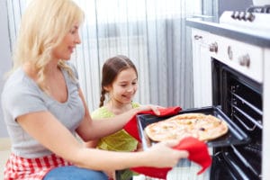 Mother and daughter cooking